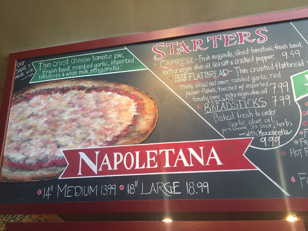 Thin-crusted flatbread with thinly sliced red onion, roasted garlic, red pepper flakes, touched with marinara sauce, sea salt, romano cheese and extra virgin olive oil.